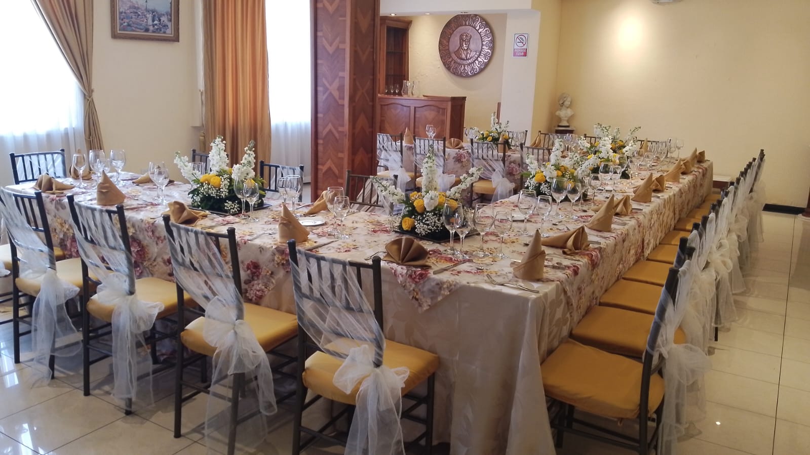 Organicemos tu Evento Salones y Eventos Contamos con las instalaciones para hacer de tu momento, inolvidable. Contáctanos Nuestros Eventos Con nosotros puedes organizar una variedad de eventos que necesites. Bodas Bautizos 15 Años Cumpleaños Fiestas Infantiles Eventos Corporativos Nuestros Salones de Eventos Salón Pichincha Capacidad para 300 personas. Ver Más Salón Tarqui Capacidad para 220 personas. Ver Más Salón Jambelí Capacidad para 120 personas. Ver Más Salón Cosme Renella Capacidad para 45 personas. Ver Más Salón Morán Valverde Capacidad para 45 personas. Salón Cenepa Capacidad para 70 personas. Ver Más Salón Zamora Capacidad para 100 personas. Ver Más Salón Guayas Capacidad para 50 personas. Ver Más Green Garden Capacidad para 120 personas. Ver Más Nuestra Galería Contáctanos Escríbenos para agendar tu reservación. Whatsapp: +593 99 870 1623 Whatsapp: +593 95 886 8731